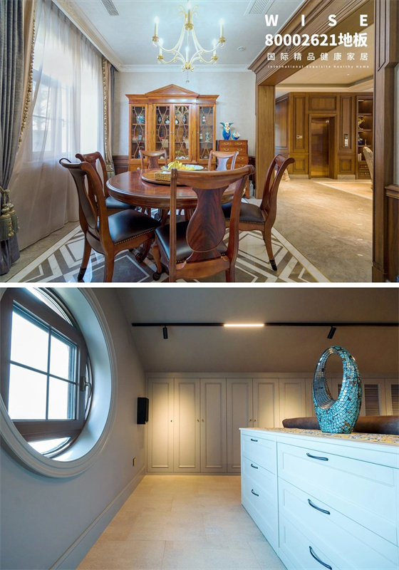 DIS5622地板以原木色做底、咖色鮮明木紋點(diǎn)綴,天然實(shí)木的花色紋理,呈現(xiàn)自然韻律之美,傳遞內(nèi)斂的奢華。人字拼通鋪加強(qiáng)空間立體感、具有視覺(jué)拉伸的效果,規(guī)則的線條層次讓家高級(jí)又時(shí)尚。?